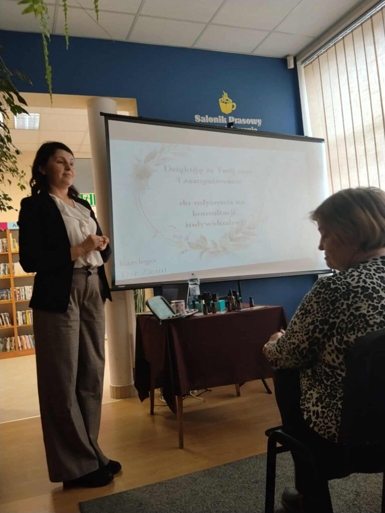 Dziś w naszej bibliotece odbyło się wyjątkowe spotkanie z Panią Marią Jaczyńską, edukatorką aromaterapii. Podczas zajęć poznaliśmy wiele ciekawych olejków eterycznych oraz ich zastosowania – zarówno te zdrowotne, jak i relaksacyjne.
